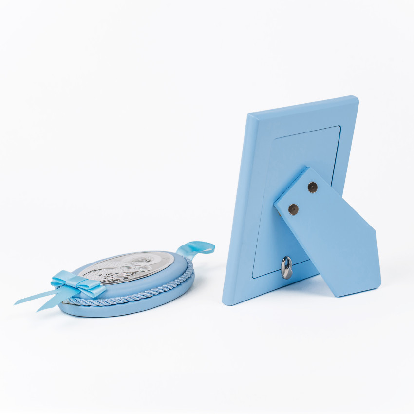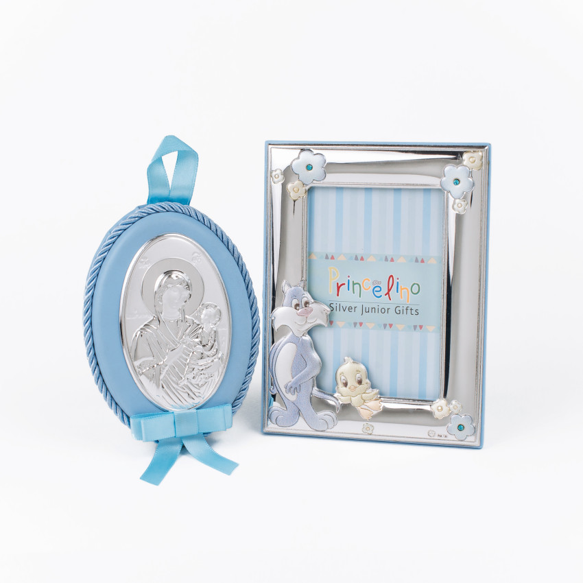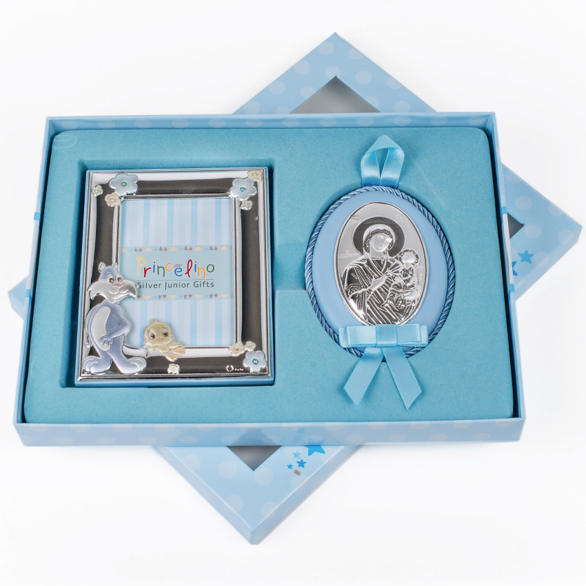 Срібний подарунок хлопчику фоторамка 13х17см з іконкою на подушечці 8x10см