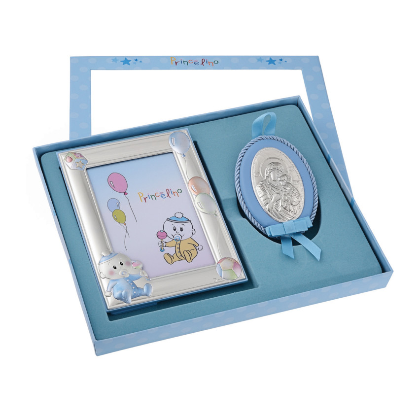 Срібний подарунок хлопчику фоторамка 9,5x12,5см з іконкою на подушечці 8x10см