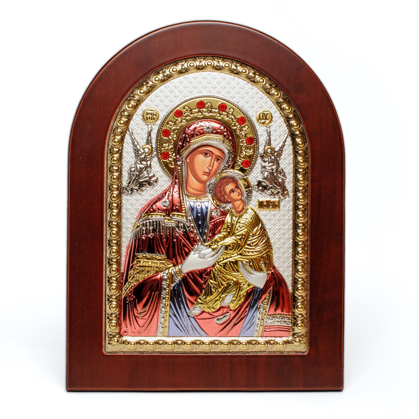 Страсна (Неустанної Допомоги) Ікона Божої Матері 20x25см в різнобарвній емалі аркової форми на дереві