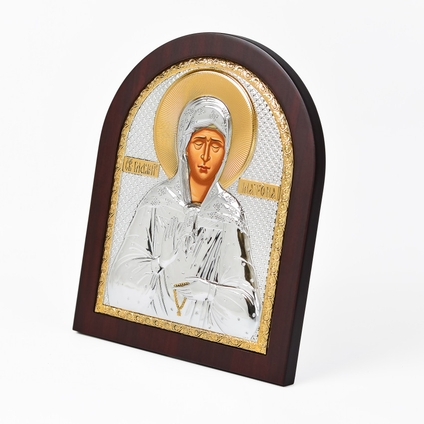 Срібна Ікона Свята Матрона 20х25см арочної форми на дереві з рамкою EP5-163XAG/P