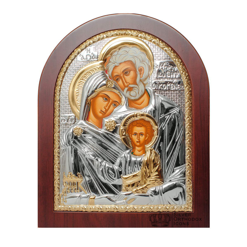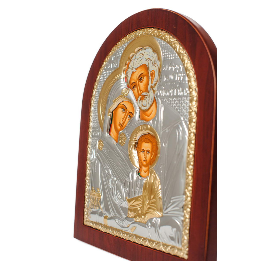 Срібна Ікона Святе Сімейство 14,7х18см арочної форми на дереві з рамкою EP4-015XAG/P