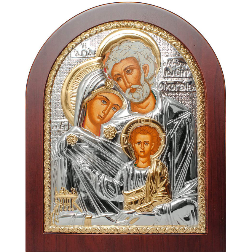 Срібна Ікона Святе Сімейство 20х25см арочної форми на дереві з рамкою EP5-015XAG/P