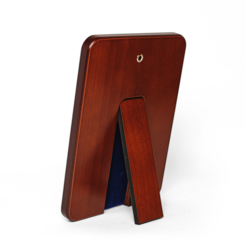ссади иконы есть откидная ножка и отверстие для крепление на стене