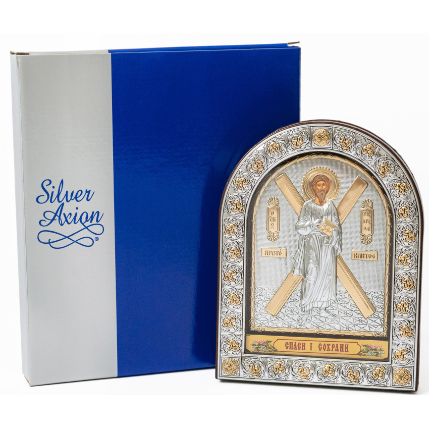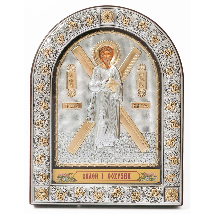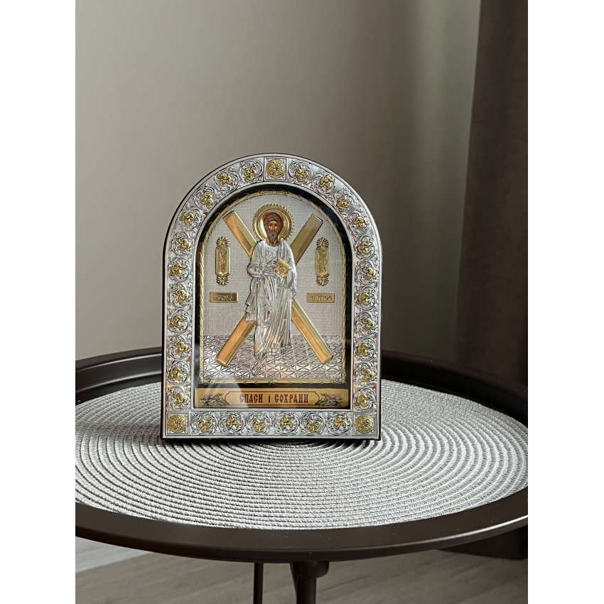 Ікона Святого Апостола Андрія Первозваного в срібному кіоті під склом