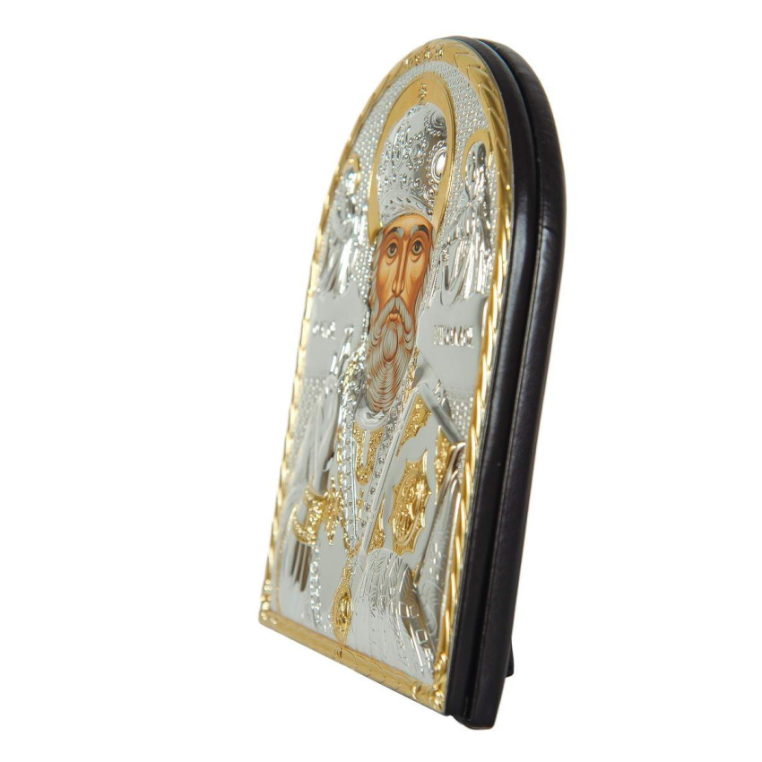 Святий Миколай Угодник 16,5x21,5 см - Срібна Ікона в шкіряній оправі