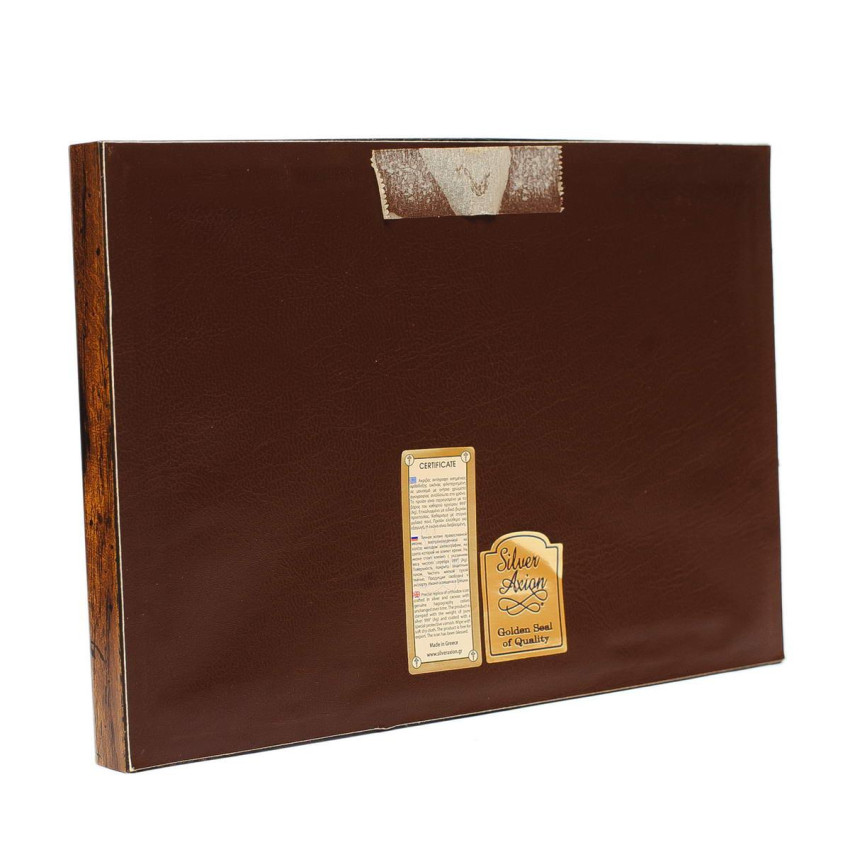 Образ має прямокутну форму з обрамленням в дерев'яній рамці.Оклад виробу виготовлений із комбінованого листа металу miro-silvero – верхня частина якого ламінована сріблом 999°: в окремих місцях композиція вдало прикрашена сусальним золотом, що придає їй більш контрастного вигляду. За допомогою сучасних методів обробки дорогоцінних металів та новаційного устаткування, виробнику вдалося досягнути найвищої якості деталізованого зображення на сріблі - всі елементи орнаменту композиції ікони чітко вирізьблені та яскраво проглядаються до найменших дрібниць. Обличчя Святих – відкрите, воно прописане методом шовкографії на лляному полотні натуральними фарбами «темпера». Зовнішній шар дорогоцінного металу ікони покритий спеціальним захисним лаком, що уберігає срібло від потемніння та старіння, захищаючи його від зовнішніх подразників таких як пил та сонячні промені – образ зберігатиме свій первозданний вигляд багато років. Основа ікони – срібний оклад та лик святих – закріплені під склом в кіоті прямокутної форми; сам скляний кіот образу ззовні обрамлений в дерев'яну рамку виготовлену з МДФ покритого шпоном.Ззаду Ікона має гачок для зручного розміщення образу на стіні. Даний виріб чудо буде підійде до інтер'єру спальної кімнати, кухні, вітальні чи дитячої кімнати.Образ виготовлений в грецькому стилі іконографії з дотриманням всіх канонів давньовізантійського іконопису.Переваги: Багатошаровий матеріал окладу miro-silvero;Захищений від потемніння срібний оклад;Гармонійне поєднання срібла з золотом;Чіткий деталізований рельєфний узор;Європейське виробництво;Основа закрита склом;Упакування:Виріб має оригінальне фірмове упакування від виробника - ікона надійно упакована в якісній картонній коробочці з логотипом компанії та м'який мішечок; дане упаковування гарантує, що виріб надійде Вам цілим та неушкодженим, а також в такому вигляді образу можна представити на подарунок близькій людині.Виробник: Silver Axion;Модельний ряд: Afon Silvero;Країна виробник: Греція;Купуючи в інтернет-магазині Silvericons срібний образ - Ви завжди будете впевненими у придбанні автентичного, якісного та оригінального виробу! Всі грецькі ікони мають Сертифікат Якості від виробника на тильній стороні, який засвідчує, що даний образ виготовлено на фабриці Silver Axion, а також вказує на модельну серію - Afon Silvero. Сертифікат надає Вам безстрокову Гарантію на дану ікону...