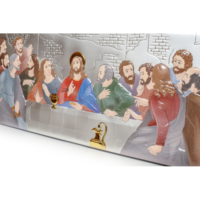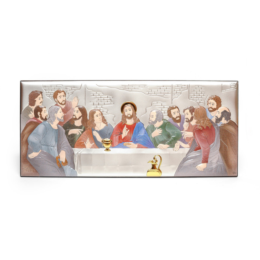 Таємна Вечеря 38,5х17 см Срібна Ікона, прикрашена Різнобарвною Емаллю