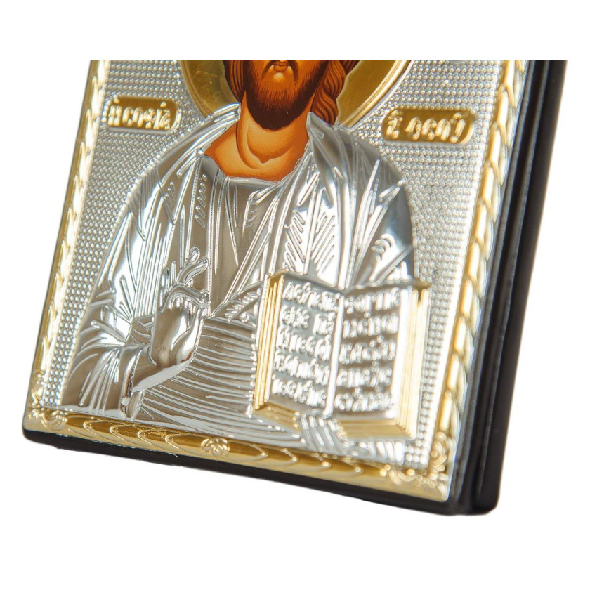 Иисус Христос Спаситель 16,5x21,5см - Серебряная Икона в кожаной оправе